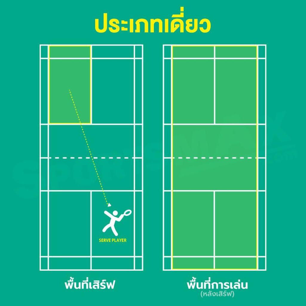 อีกส่วนใน กฏกติกาแบดมินตัน ที่มือใหม่มักสับสนคือเส้นสนาม เพราะเกมเดี่ยวกับเกมคู่ใช้เส้นยืนและเส้นเสิร์ฟไม่เหมือนกัน
